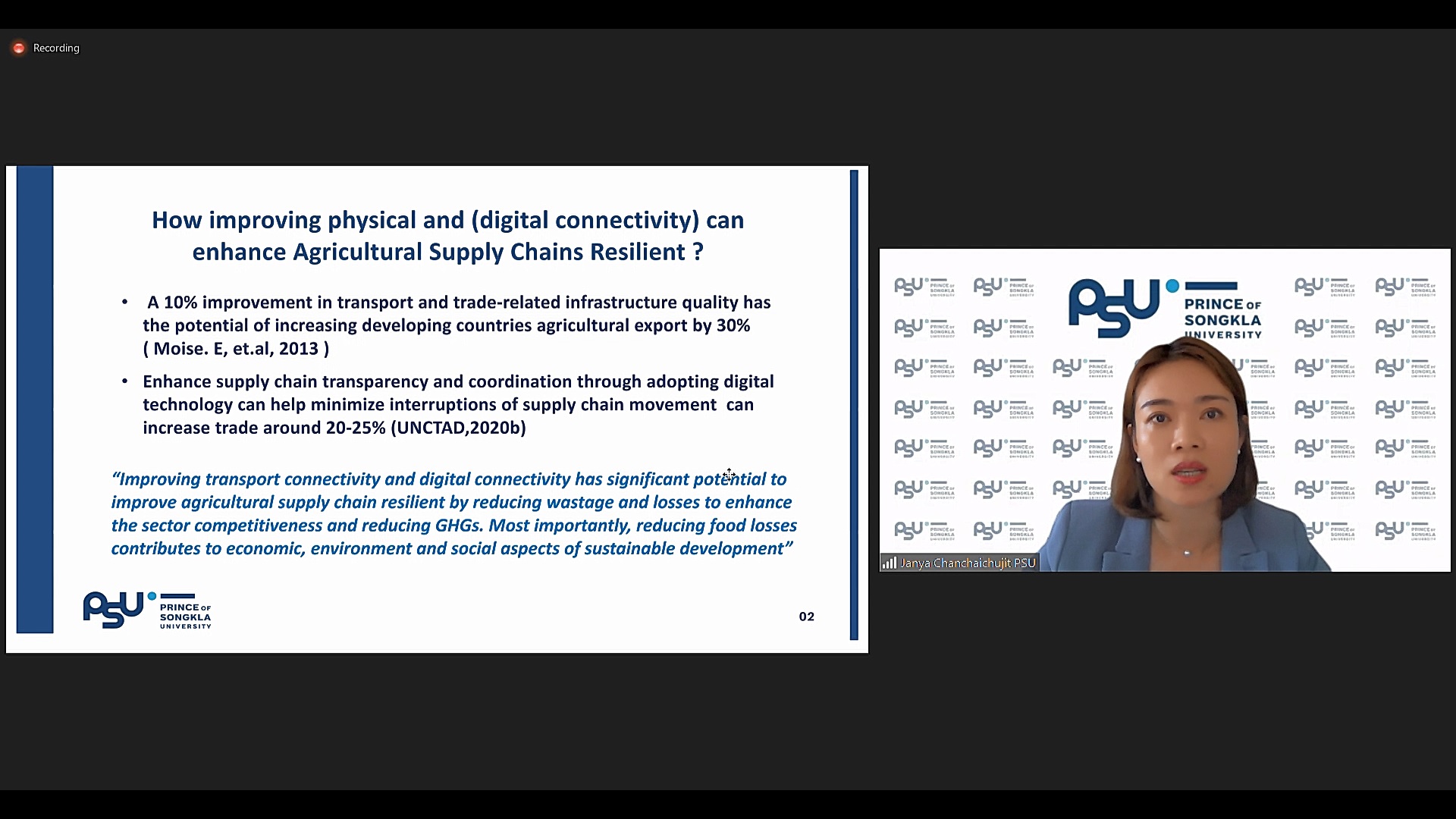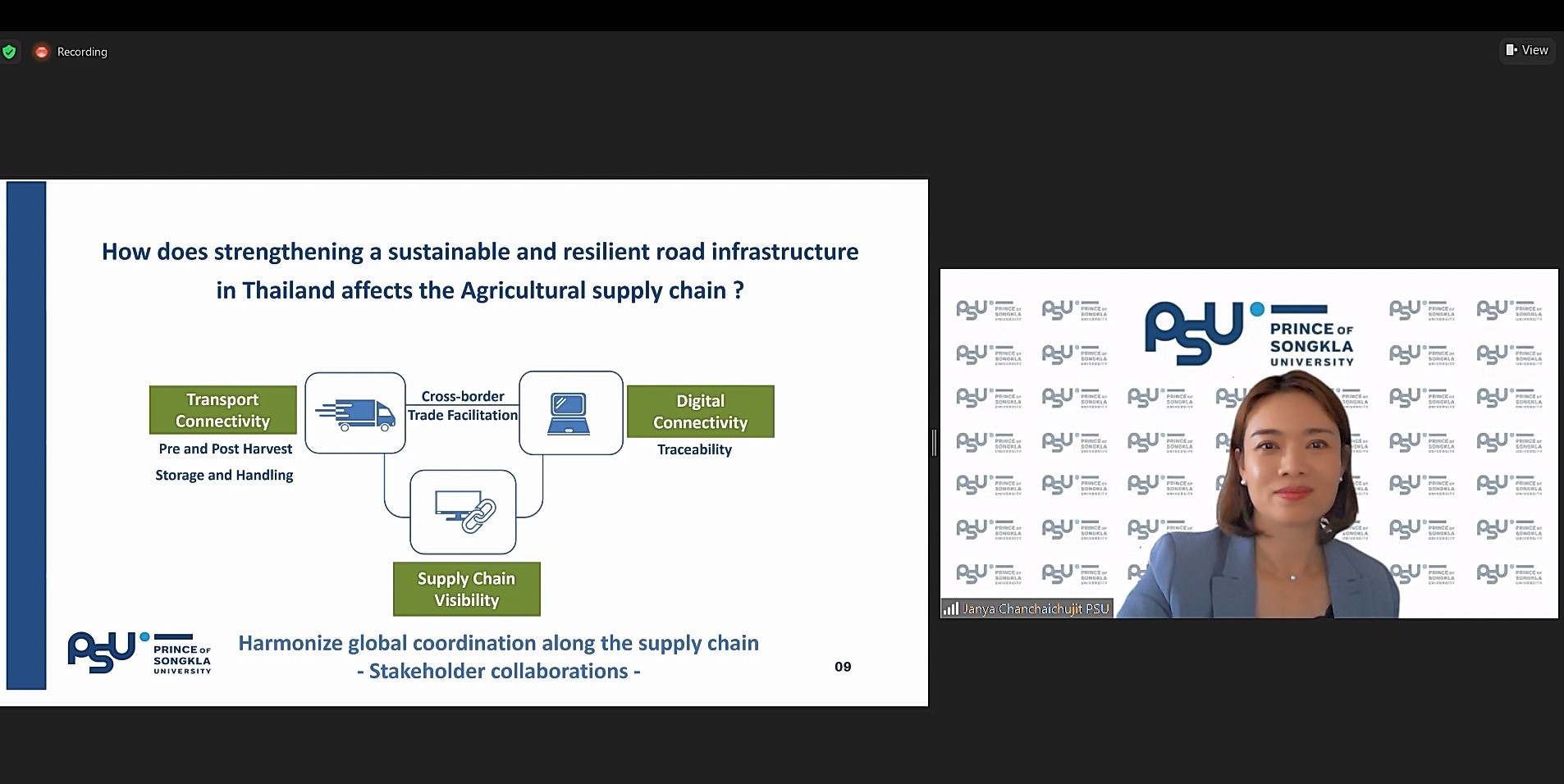 วันที่ 27 มีนาคม 2566 รศ. ดร. จรรยา ชาญชัยชูจิต ได้เข้าร่วมการเสวนาเรื่อง Building a Sustainable and resilient Asian Highway Network to Support SDG Implementation in Asia and the Pacific ซึ่งการเสวนาดังกล่าวเป็นกิจกรรมที่จัดขึ้นในงาน 10th Asia-Pacific Forum on Sustainable Development (APFSD) โดย United Nations Development Programme (UNDP) ร่วมกับ Economic and Social Commission for Asia and the Pacific (ESCAP) ในการประชุมครั้งนี้มุ่งเน้นการนำเสนอความคิดเห็นเกี่ยวกับการสร้างกลไกในการสนับสนุนและการพัฒนาการเชื่อมต่อของโครงข่ายการขนส่ง (Road Transport Connectivity) ตลอดเส้นทางหลวงสายเอเชีย (Asian Highway) เพื่อบรรลุเป้าหมายการพัฒนาอย่างยั่งยืนตามเป้าหมาย SDGs และเป็นการถอดบทเรียนการดำเนินงาน (Best Practices) จากประเทศในภูมิภาคเอเชียแปซิฟิก ในการเสวนาครั้งนี้ รศ. ดร. จรรยา ชาญชัยชูจิต ได้ร่วมอภิปรายโดยกล่าวถึงความสำคัญของการเชื่อมต่อของโครงข่ายการขนส่ง (Road transport connectivity) ต่อห่วงโซ่อุปทานทางการเกษตร (Agricultural Supply Chain) ในประเทศอาเซียนและผลกระทบจากโควิด-19 ในห่วงโซ่อุปทานเป็นกรณีศึกษา เพื่อแสดงให้เห็นว่าการพัฒนา Road Infrastructure และ Digital Connectivity สามารถยกระดับห่วงโซ่อุปทานทางการเกษตรได้อย่างไร การนำเสนอดังกล่าวมีการสรุปแนวทางการออกแบบห่วงโซ่อุปทานทางการเกษตรแบบใหม่ให้มีความคล่องตัวมากขึ้นในการเปลี่ยนผ่านสู่ความยั่งยืน โดยการปรับปรุงการขนส่งและการเชื่อมต่อทางดิจิทัล (Infrastructure and Digital Connectivity) จะสามารถเพิ่มทัศนวิสัยในห่วงโซ่อุปทาน (Supply Chain Visibility) ได้ทั้งนี้ความร่วมมือระหว่างผู้มีส่วนได้ส่วนเสียทั้งหมดและการสนับสนุนจากรัฐบาลในการอำนวยความสะดวกทางการค้าและการลงทุนโครงสร้างพื้นฐานจะเป็นปัจจัยแห่งความสำเร็จที่สำคัญในความท้าทายนี้
